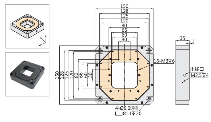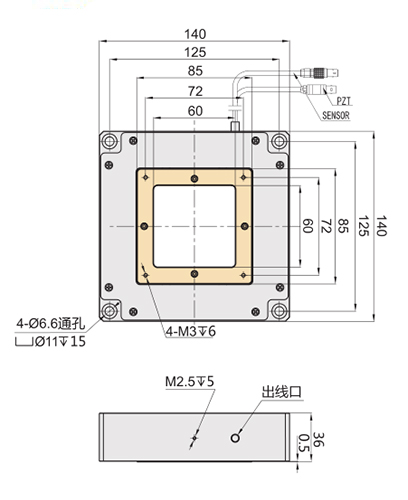 • P15.XYZ ピエゾ位置決めステージ 300 μm     貫通穴 60×60 mm
