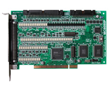 MC8082Pは、多軸制御に最適な4軸モータコントロールIC”MCX314″を2個搭載した、PC/AT互換機PCIパス対応の8軸モーションコントロールボードです。1ポートで8軸のサーボモータ、またはステッピングモータを各軸独立に位置決め制御または速度制御することができます。各種センサ出力の他に32点の汎用出力を搭載。1台のPCで複数枚使用時、最大64軸まで制御できます。(ボードIDの切替で最大8枚まで認識可能。) 制御軸:8軸(独立・同時制御) ドライブ速度:1PPS〜4MPPS 自動原点出し機能 台形駆動・非対称台形駆動・放物線S字加減速・全軸エンコーダA相/B相/Z相入力対応 Windows/XP/Vista/7用 デバイスドライバ、サンプルプログラム(VB・VC++)を付属